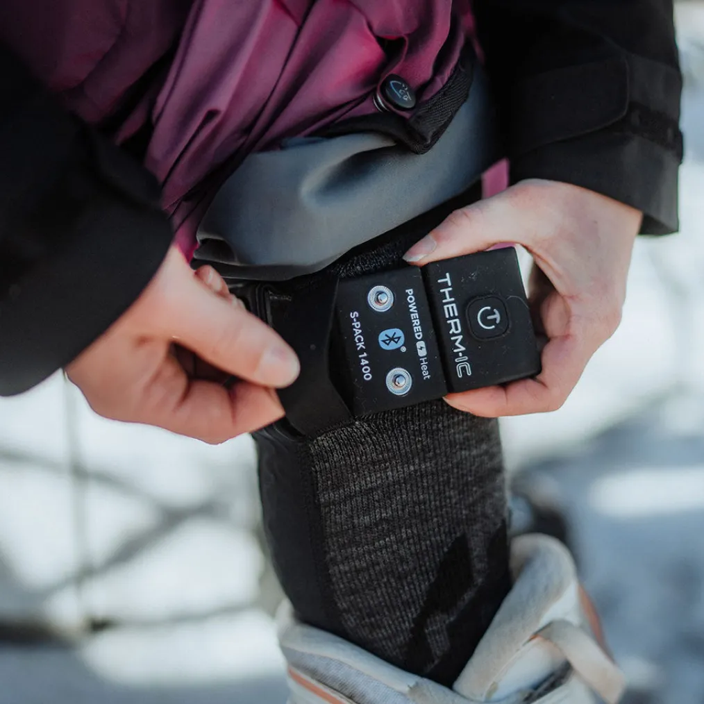 These heated ski socks come with a pair of S-PACK 1400 batteries, designed to give you up to 16 hours of warmth during your days in winter sports. These batteries are equipped with Bluetooth technology, so you can control the heating of your socks from your smartphone.