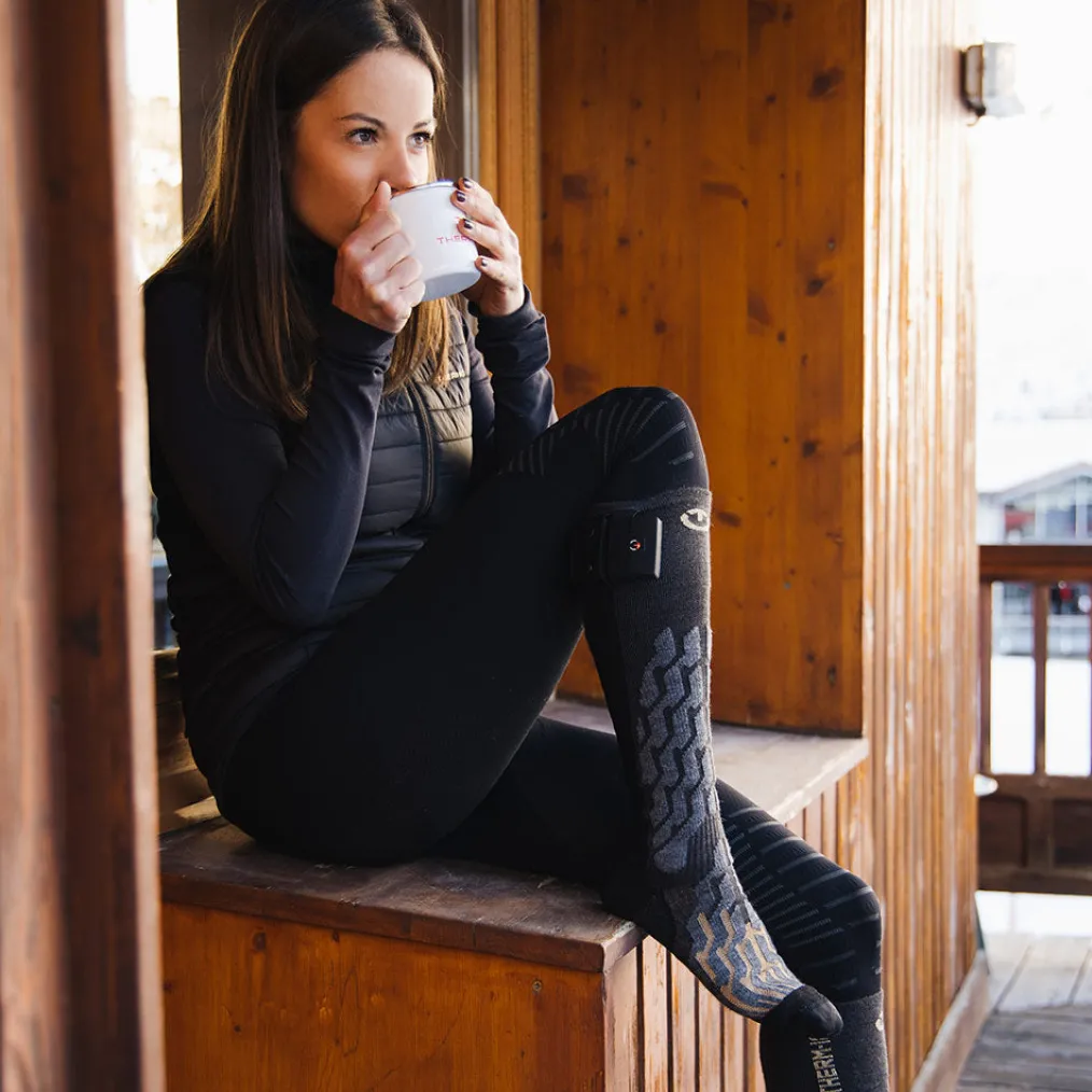 Powersocks Heat Fusion Women are heated ski socks for women. Technical, soft and breathable, they efficiently wick away moisture thanks to their specific micro-channel construction. These heated ski socks also provide maximum comfort in the sensitive areas of the foot, namely the shin, calf and instep.