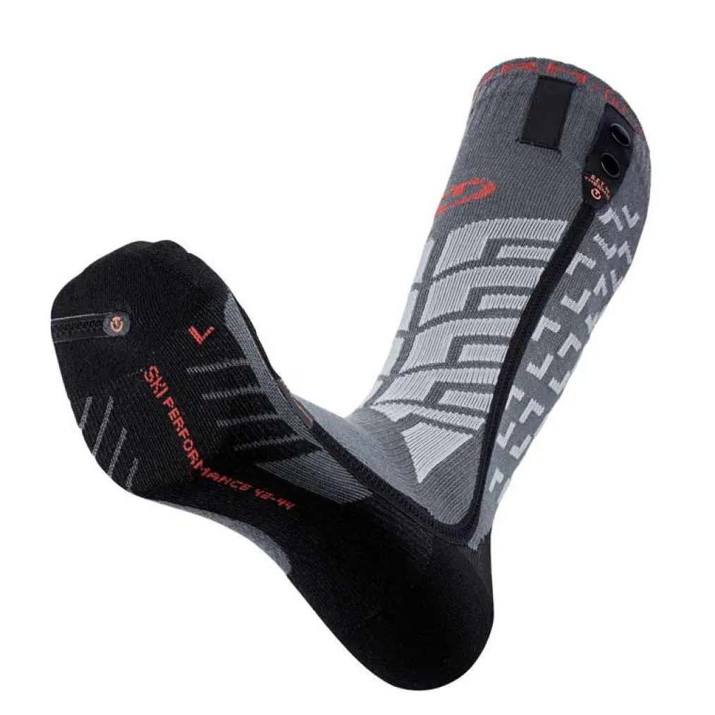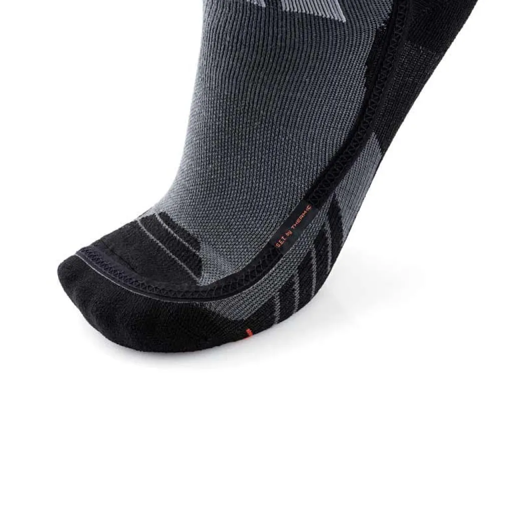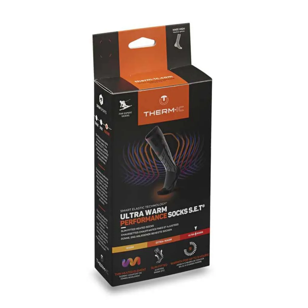 In summary, these Ultra Warm Performance S.E.T® heated socks have the optimal fit and superior comfort for expert skiers. They incorporate a subtle warming line and thermo-regulating knitting technology to keep your feet warm and dry in extreme conditions. With their thin construction and optimal fit, these socks let you get the most out of your adventures on the ski slopes.
