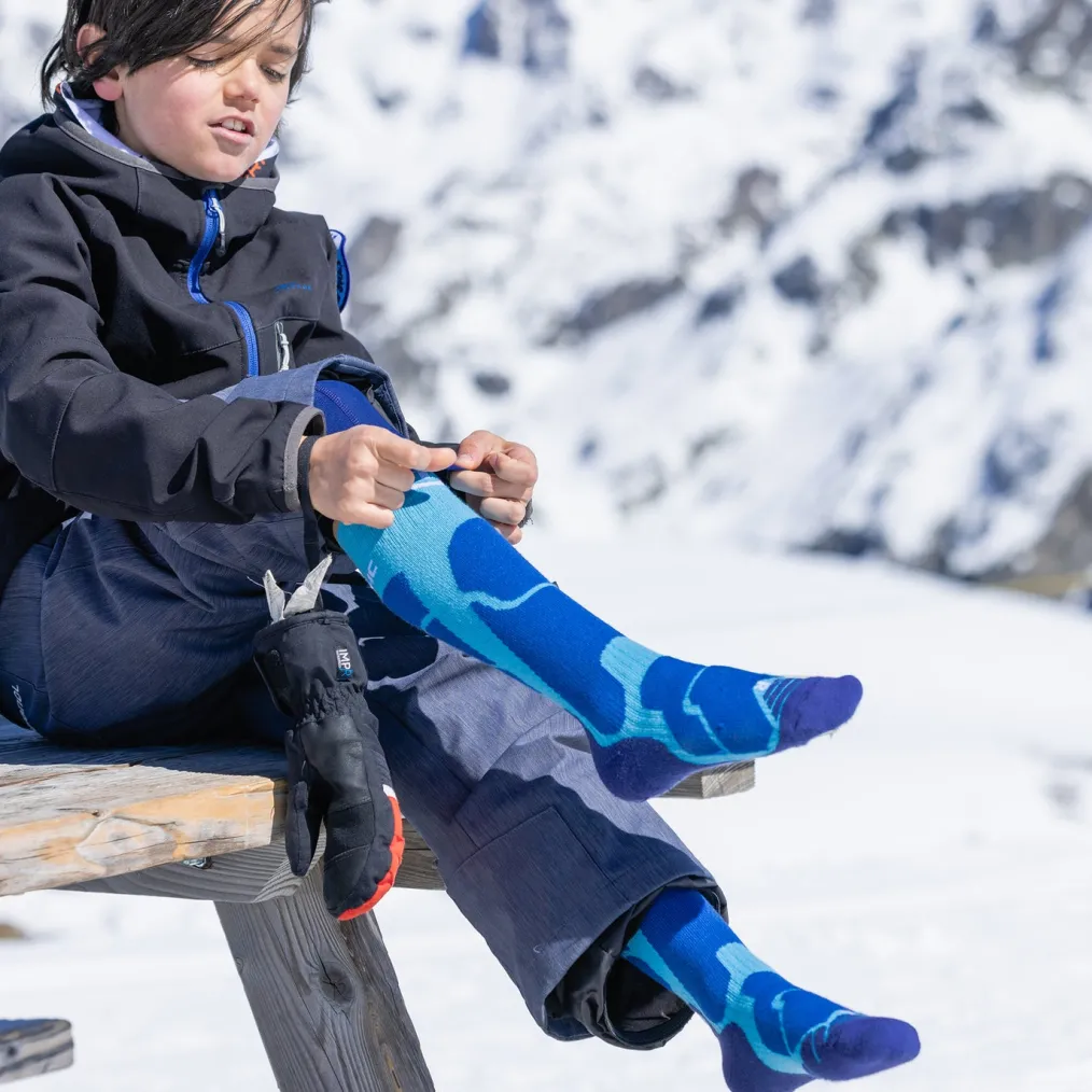 The Ski Warm Junior socks are comfortable and breathable ski socks for children. Their specific construction ensures efficient moisture wicking and optimal comfort in specific areas of the foot, namely the shin, calf and instep.