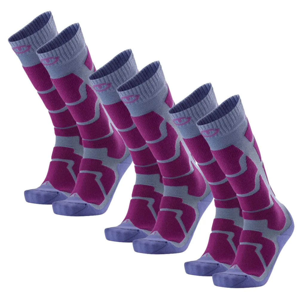 Set of 3 pairs of women ski socks available in different sizes and various colours.