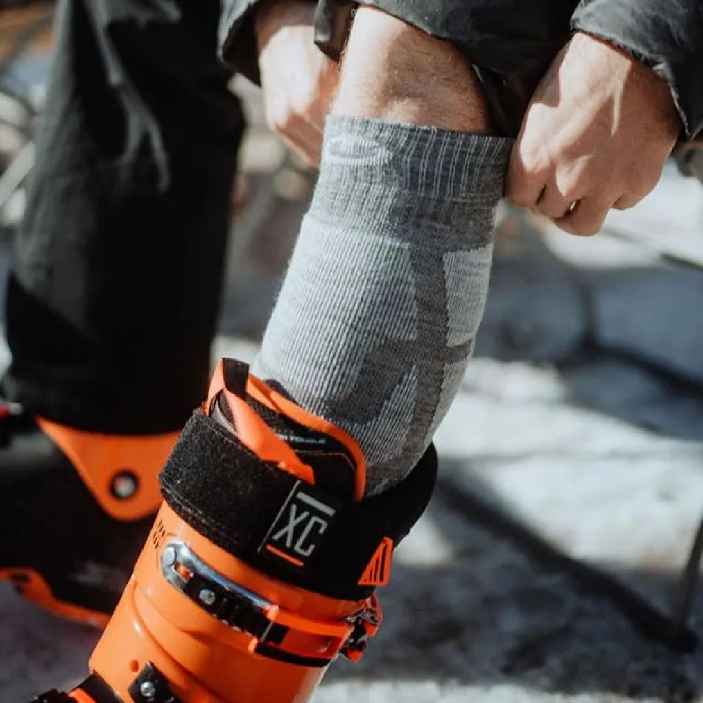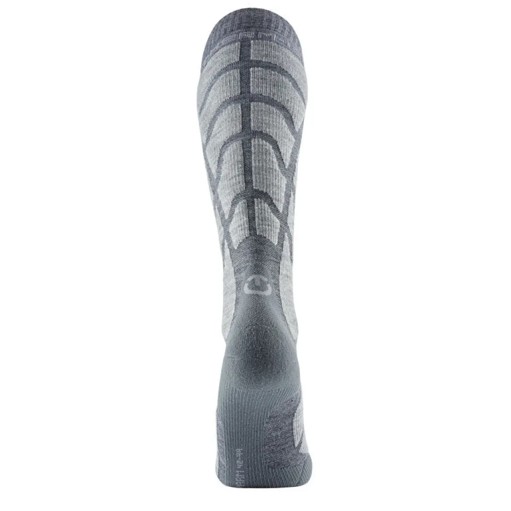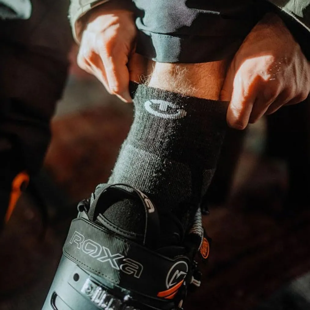 The Ski Warm ski socks are comfortable and breathable and are made of merino wool. Their specific construction ensures efficient moisture wicking and optimal comfort in specific areas of the foot, namely the shin, calf and instep.