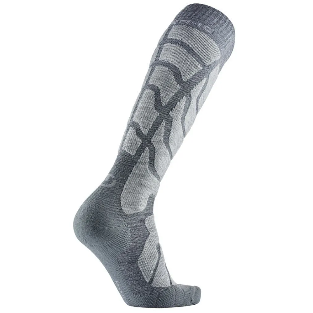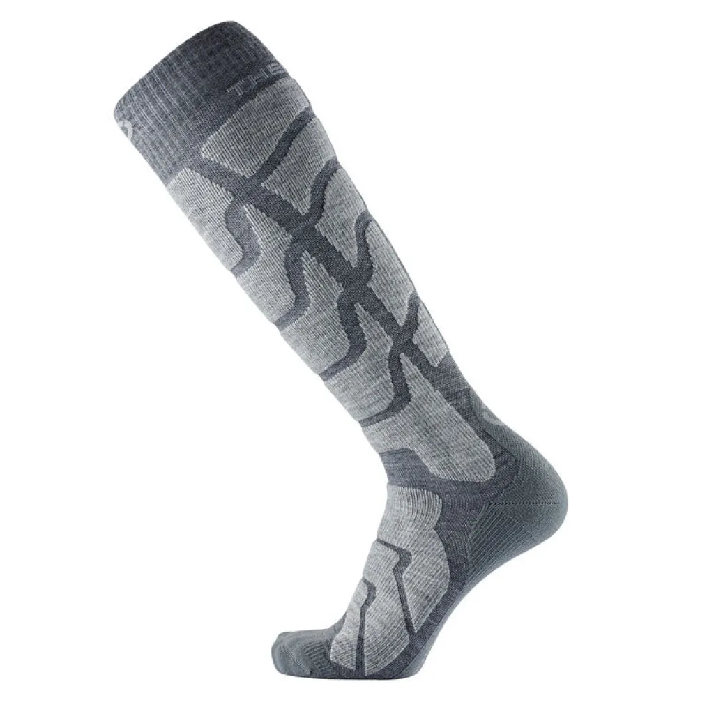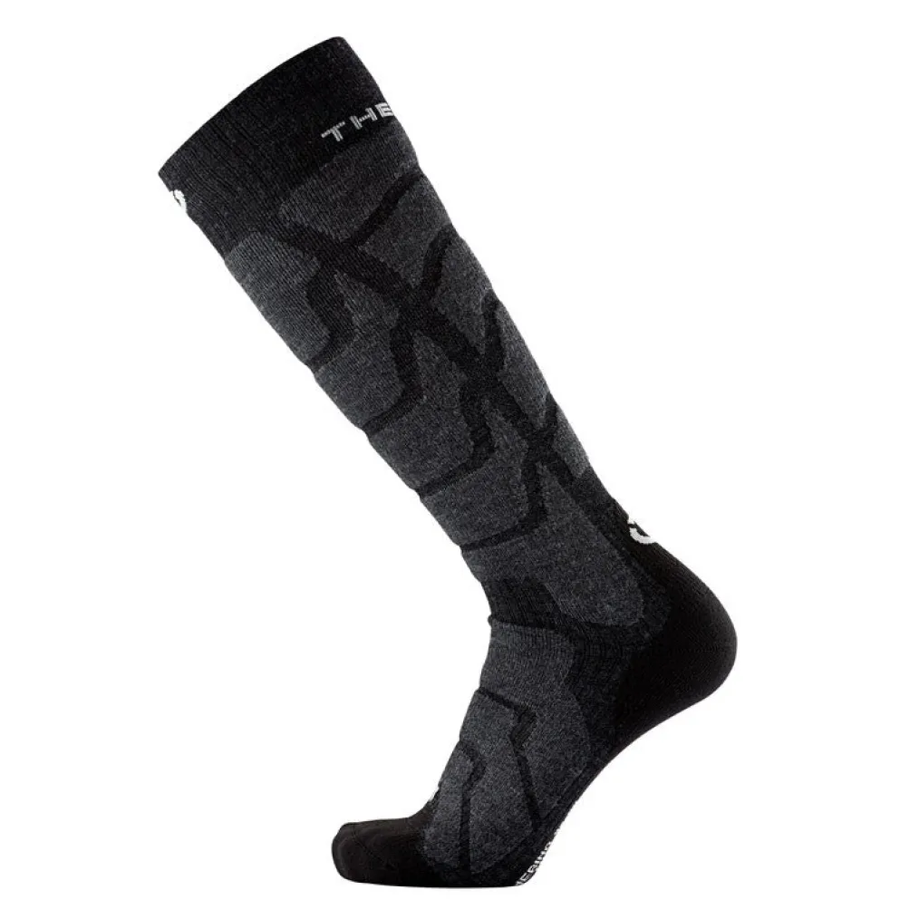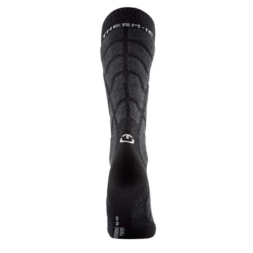The Ski Warm ski socks are comfortable and breathable and are made of merino wool. Their specific construction ensures efficient moisture wicking and optimal comfort in specific areas of the foot, namely the shin, calf and instep.